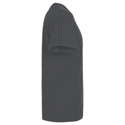 Set-in sleeve. 1x1 rib at neck collar. Inside back neck tape in self fabric. Tubular construction. Sleeve hem and bottom hem with wide double topstitch.